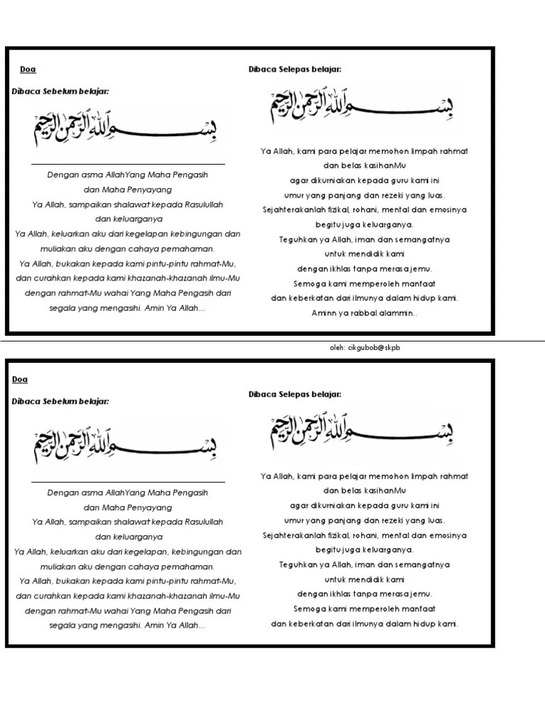 Disini disediakan doa sebelum, sedang dan selepas belajar…